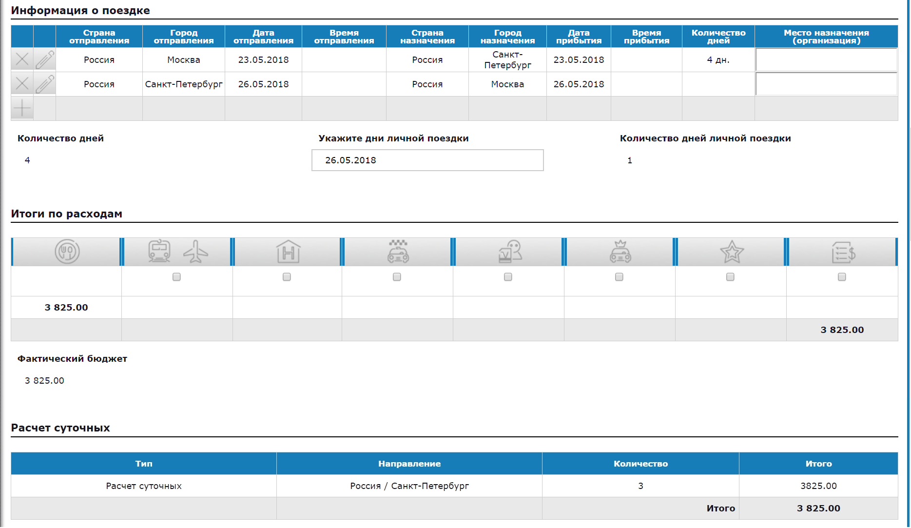 • Оптимизация хранения информации и как следствие, экономия времени и снижение вероятности ошибок. Достаточно ввести информацию о сотруднике в систему один раз, и при оформлении следующей поездки ее не надо будет дублировать. Вся информация о прошедших, текущих или планируемых поездках также сохраняется.