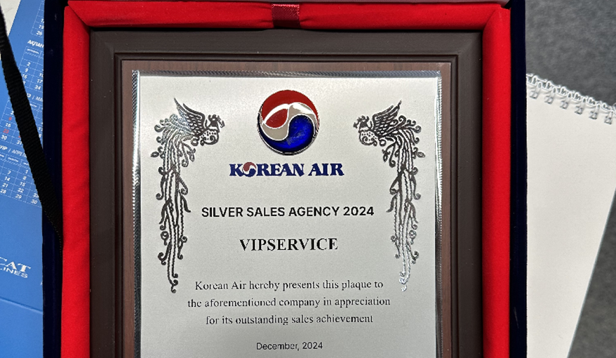 Холдинг Випсервис получил награду от авиакомпании Korean Air по итогам сотрудничества в 2024 году