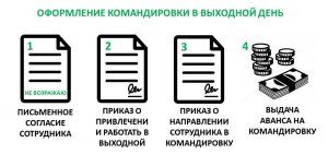 Процесс зависит от того, отдыхал сотрудник в выпавший на момент командировки выходной день, или занимался своими непосредственными служебными обязанностями. Самовольные рабочие поездки в выходной день оформления и, соответственно, оплаты не требуют, так как командировка в соответствии с установленным законодательством производится только по распоряжению и на основании приказа от руководителя организации.
