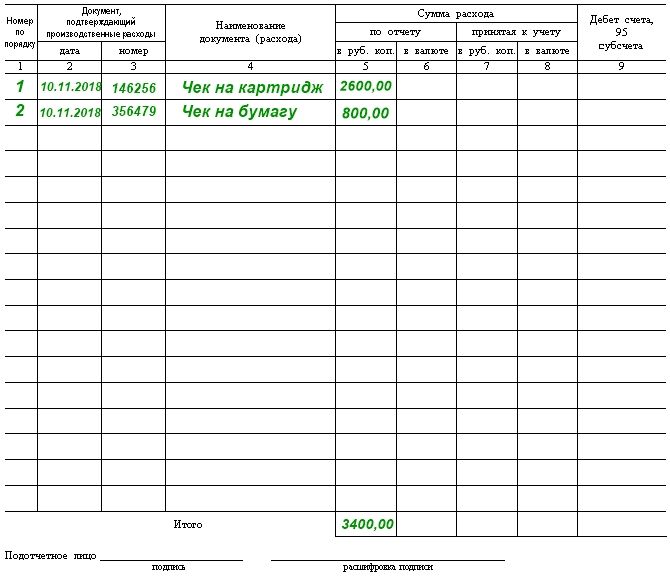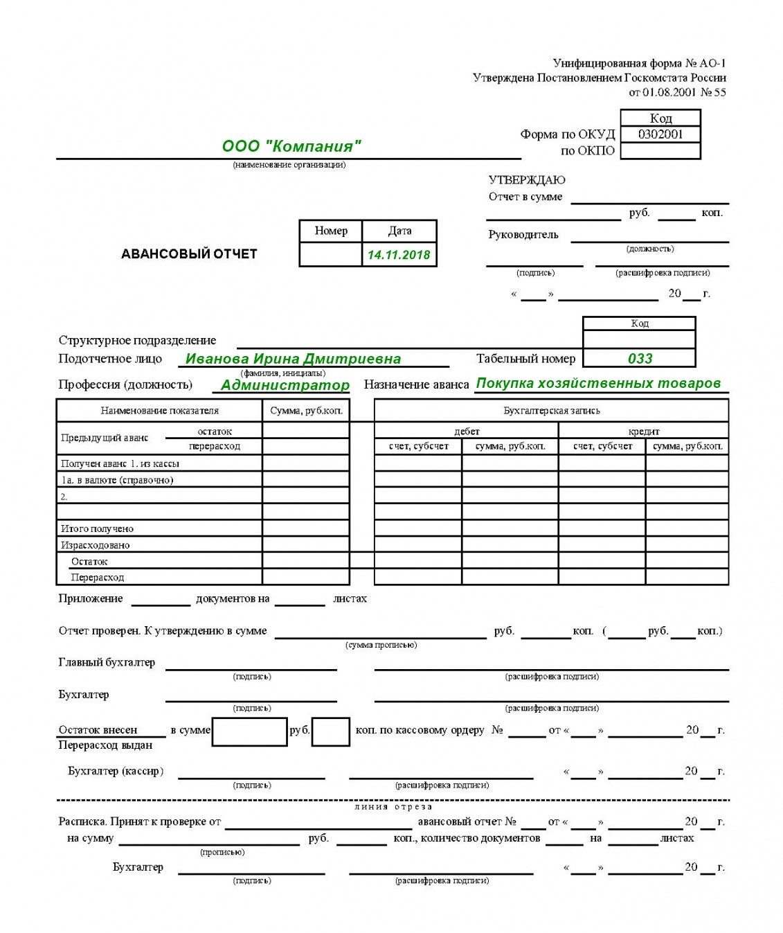 Образец авансового отчета: бланк и пошаговые комментарии по его заполнению