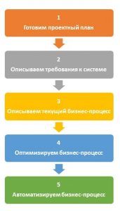 Внедрение системы представляет собой сложную многокомпонентную задачу. Отправной точкой процесса является составление четкого плана и требований к системе, а также выделение целей ее использования. Далее описываются процессы, которые необходимо автоматизировать. После этого процессы упрощаются и доводятся до определенного набора алгоритмов. Автоматизировать можно только упрощенный процесс, который представляет собой набор описанных действий.