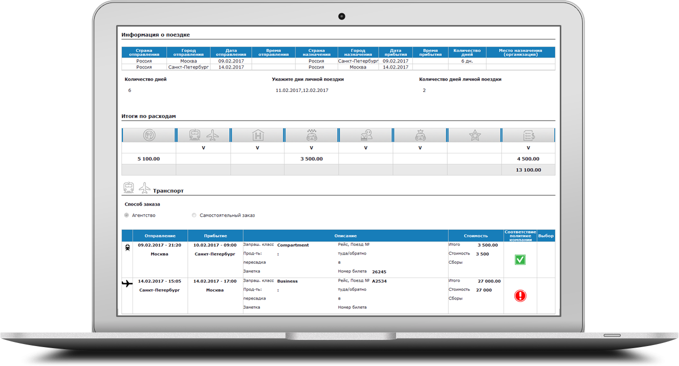 Очень удобно, если компания использует специализированное бизнес-приложение, комплексно автоматизирующее командировочный процесс. В этом случае сотрудник заполняет заявку на поездку или авансовый отчет в онлайн-приложении, куда уже зашита вся Travel-политика компании, лимиты по поездкам, а также сформированы все необходимые документы.