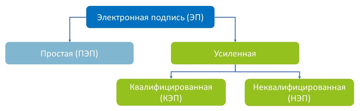 В 2011 году впервые был принят Федеральный Закон «Об электронной подписи». Он закрепил за электронной подписью (ЭП) ту же юридическую силу, что и у стандартной, проставленной владельцем на бумажном документе. Согласно этому закону, электронные подписи подразделяются на два основных вида: простая и усиленная, причем усиленная имеет две степени – квалифицированная и неквалифицированная.